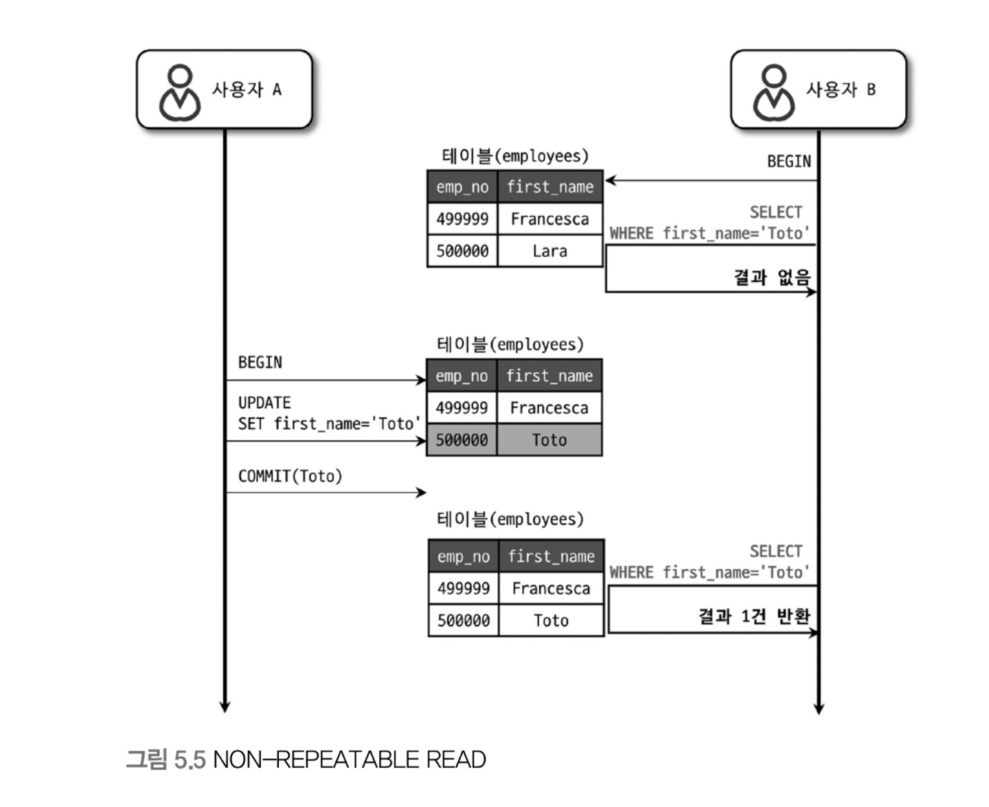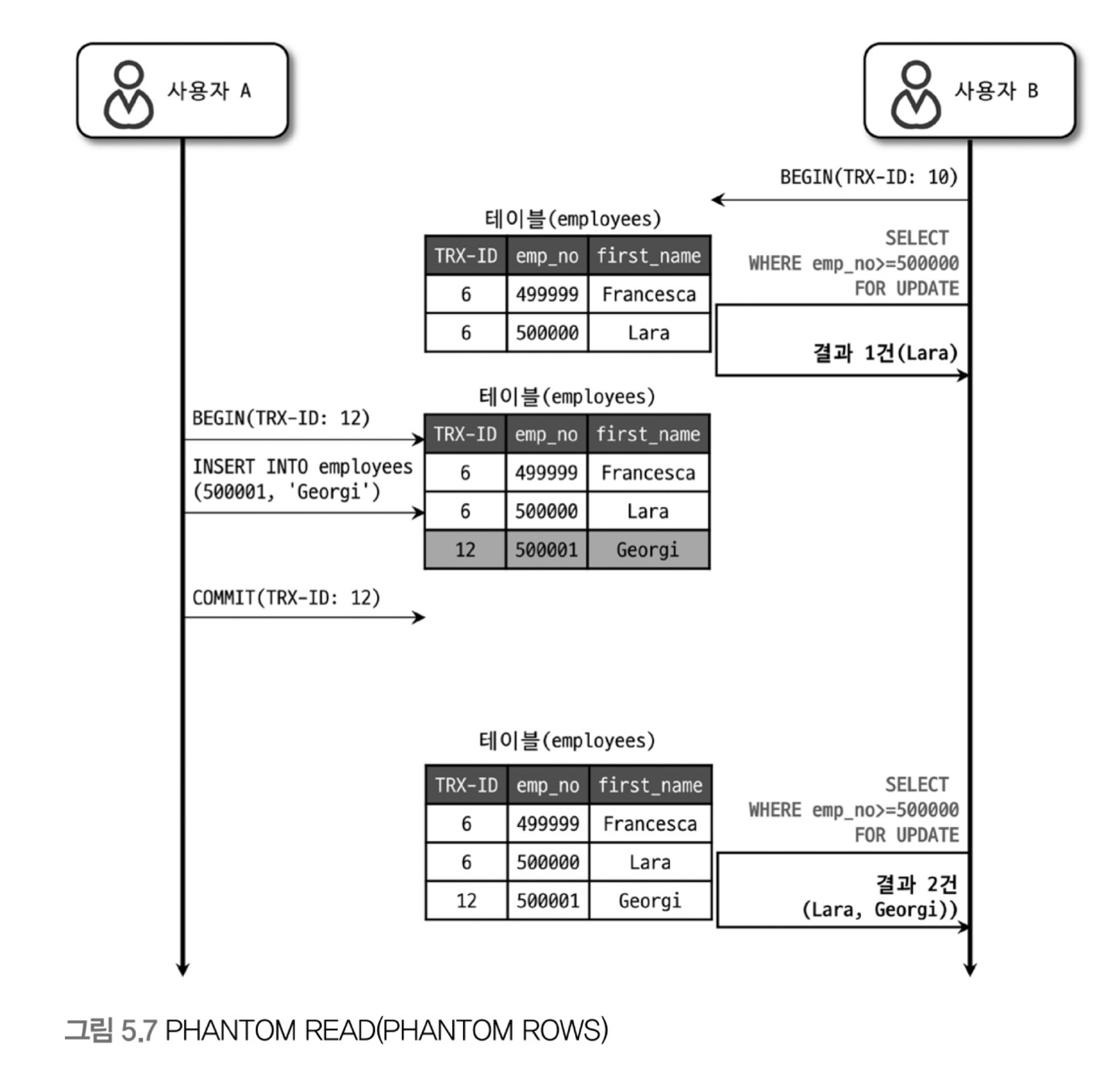 - 하나의 트랜잭션 내에서 똑같은 SELECT 쿼리를 실행했을 때는 항상 같은 결과를 가져와야 한다는 "REPEATABLE READ" 정합성에 어긋나는 것
